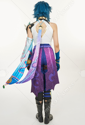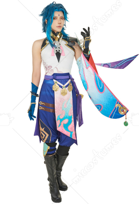 Genshin Impact Tartaglia Childe Cosplay Costume Top and Trousers with Scarf and Gloves