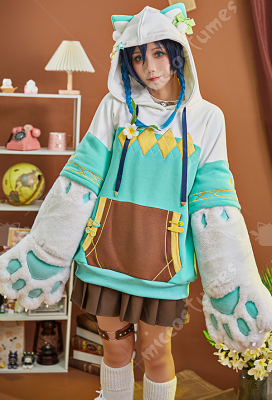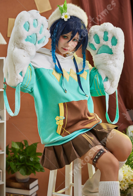 Genshin Impact Venti Derivative Pullover Hoodie with Detachable Bag Design Furry Cat Paw Gloves Fox Style Hooded Sweatshirt