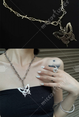 Punk Hiphop Dark Style Butterfly Pendant Clavicle Chain Necklace Gothic Metal Collarbone Chain Neck Accessory