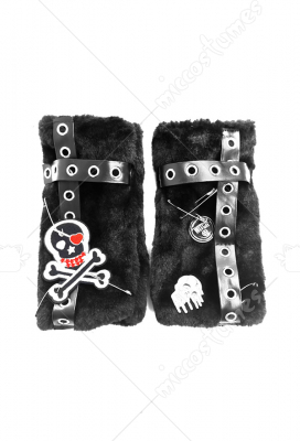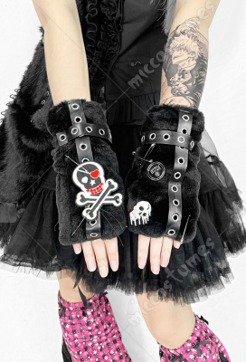 Punk Harajuku Dark Style Fluffy Fingerless Short Glove Skull Decoration Hollow Women Fashion Arm Wrist Length Warmers Glove Hand Sleeve