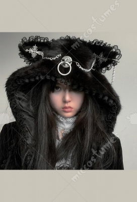 Punk Gothic Dark Style Cute Cat Ear Metal Decoration Trapper Hat Women Warm Long Ear Flap Winter Hat Beanie Cap Headwear with Scarf