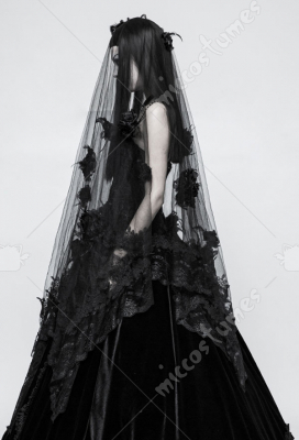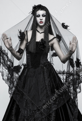 Punk Rave Dark Style Gothic Gorgeous Bride Mesh Veil Flowers Feathers Lace Decorated Net Veil Headwear for Goth Weeding