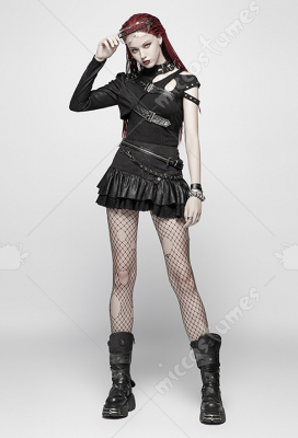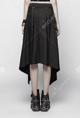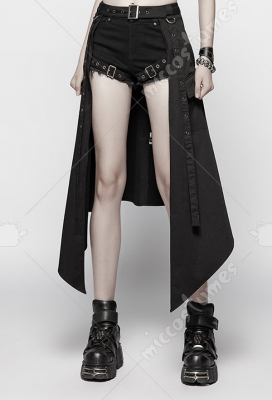 Punk Rave Gothic Strap Pendants Decorated Outer Half Skirt Cover-Up Outfit Costume with Belt Decoration