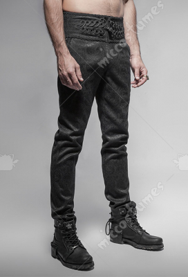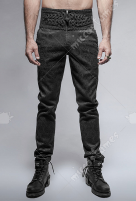 Punk Rave Gothic Buckle Worn Peacock Pattern Button Decorated Jacquard Trousers Pants Costume Outfit