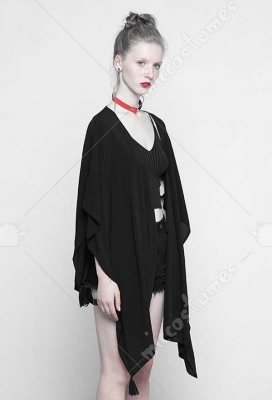 Punk Rave Gothic Lunar Eclipse Printed Pattern Silk Shawl Cover-Up Costume with Tassel Pendants
