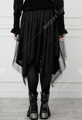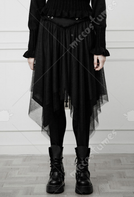 Punk Rave Dark Style High Waist Lace Up Gothic Skirt Ruffled Multi Layers Zip Up Mesh Skirt with Asymmetric Hemline