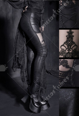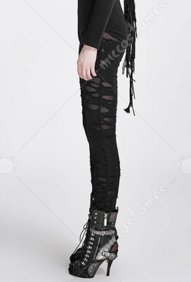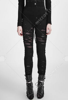 Punk Rave Fishnet Decorated Gothic Hole Pattern Ripped Trousers Broken Mesh Leggings Outfit Costume