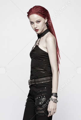 Punk Rave Dark Style Metal Chain Halter Neck Sleeveless Vest Top Women Backless Gothic Vest Upper Garment with Broken Holes