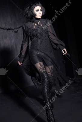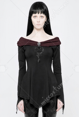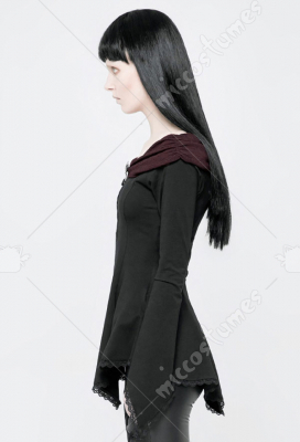Punk Rave Dark Style Off Shoulder Long Sleeve T Shirt Women Elegant Retro Bell Sleeve Irregular Hem Lace Ruffled Gothic Top Upper Garment