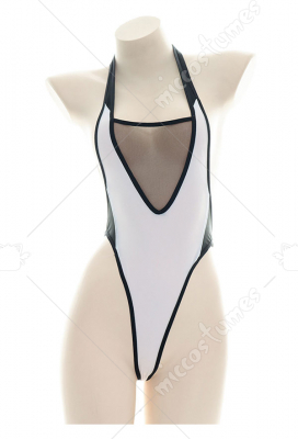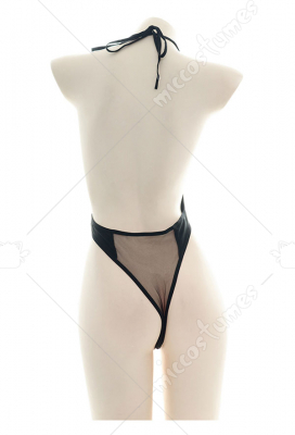 Woman Strapped Net Yarn Spliced Sleepwear One-Piece Halter Lingerie Bodysuit Costume Outfit