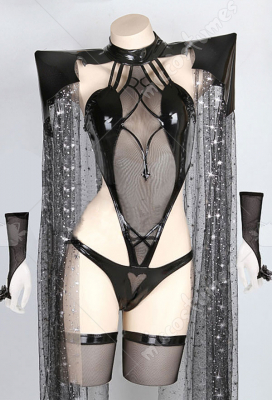 Woman Witch Rally Dark Style Bodysuit Set Lingeries Costume Outfit with Headdress Cloaks Gloves Stockings