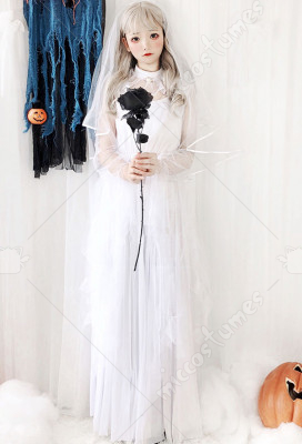 Dark Gothic Long Dress Witch Vampire Ghost Bride Dress Devil Black Angel White Cosplay Costume for Halloween