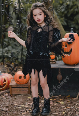 Child Black Angel Elf Halloween Costume Dress for Halloween and Stage