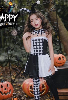 Child Black and White Clown Performance Dress Witch Cosplay Costume for Halloween and Party