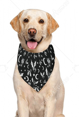 Halloween Black and White Bat Pattern Pet Bandana Triangle Double Sided Digital Printing Pet Bibs Scarf Washable Pet Kerchief for Dog Cat