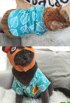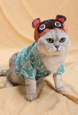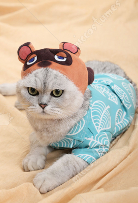 Animal Crossing Tom Nook Tanukichi Raccoon Dog Pets Photo Prop Cosplay Costume T-shirt Clothing and Hooded Hat for Cats and Dogs