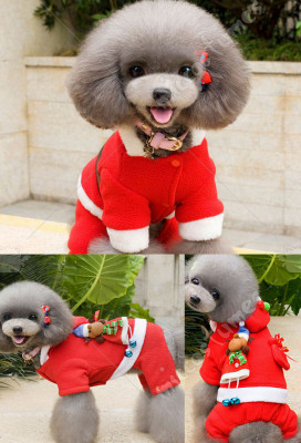 Santa Claus Dog Costume Puppy Christmas Clothes Pet Winter Hoodie Coat Clothes 4 legs for Small Dogs