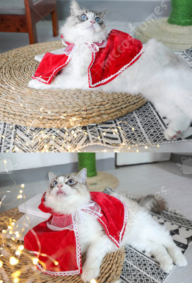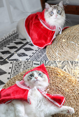 Pets Costume Little Red Riding Hood Christmas Costume Cute Lace Plush Soft Cloak for Cats Small Dogs
