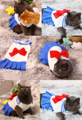 Pets Costume Blue Sailor Moon Usagi Tsukino Cats Costume JK Uniform Pet Costume for Small Dogs