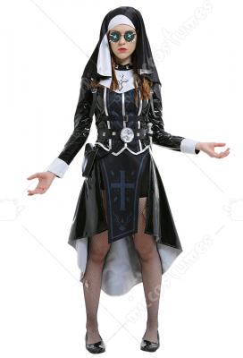 Sold Out Identity V Enchantress Patricia Dorval Fate Gothic Dark Style Cross Heated Print Pattern Num Style Snap Button Adjusted Bright Leather Dress Cosplay Costume Outfits with Earrings and Belt Group