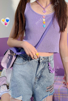 Woman Cute Four-color Love Button Round Neck Sleeveless Vest Knitted Crop Top