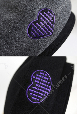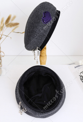 Woman Fashion Warm Beret Gothic Purple Heart Embroidery Hat Key Lock Chain Pendant Pin Ornament Painter Hat Newsboy Cap for Autumn Winter