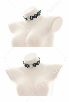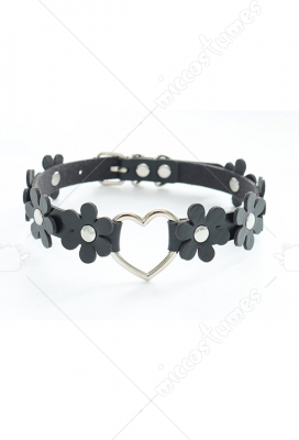 Woman Harajuku Sexy Sweet Blossom Decorated Hollow Heart Shape Choker Back Belt Adjusted Neck Ring Accessory