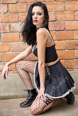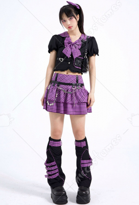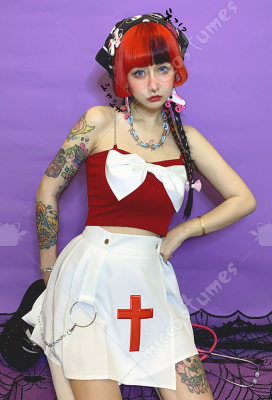 Woman Gothic Cool Cross Pattern Chain Pendant Decorated Short Skirt Cosplay Costume Outfit