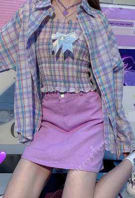 Woman Harajuku Plaid Pattern JK Uniform Cupcake Pleated Skirt Cosplay Costume Outfit