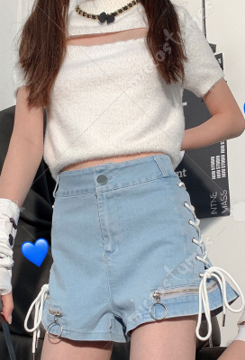 Woman High Waisted Jeans Shorts Soft Summer Casual Short Pants Drawstring Design Denim Shorts
