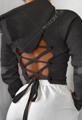 Woman Sexy Cute Fashionable Back-Tie Hollow Strapped Long Sleeved Hoodie Coat Pullover Costume Outfit for Spring Autumn
