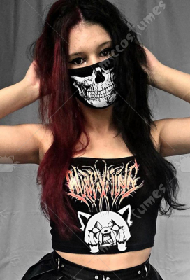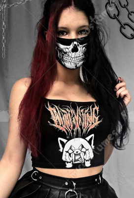 Woman Sexy Gothic Dark Style Cartoon Pattern Printed Face Mask and Lingerie Vest Top Set Costume Outfits