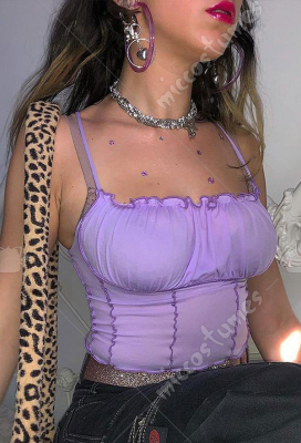 Woman Sexy Cute Breasted One-Shape Collar Ruffled Sleeveless Lingerie Vest Top Costume Outfit