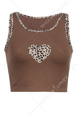 Woman Sexy Cute Leopard Pattern Hem Heart-Shape Printed Sleeveless Vest Top Costume Outfit for Spring
