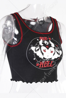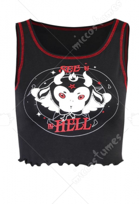 Woman Sexy Cute Sweet Style Cartoon Devil Pattern Printed Navel Sleeveless Lingerie Vest Top Costume Outfit for Summer
