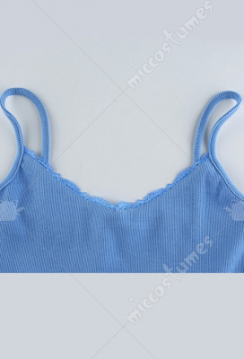 Woman Sexy Cute Pleating Tie-Front U-Shape Collar Thick Sling Lingerie Vest Costume Outfit for Summer