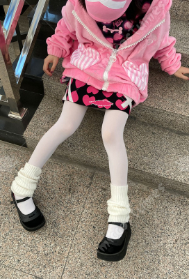 Woman Sweet Harajuku Style Cartoon Heart Pattern Wool Skirt Cosplay Costume Outfit