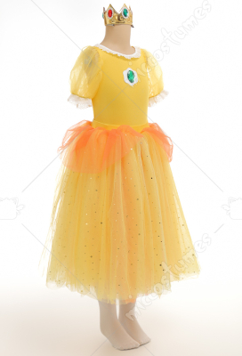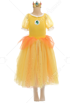 Child Princess Daisy Cosplay Costume Yellow Top and Skirt Set with Gloves Crown Pantyhose