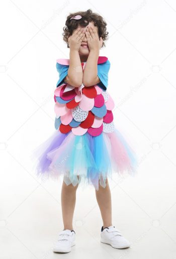 Kids The Rainbow Fish Girl Glitter Colorful Sequins Dress Cosplay Costume for Halloween Party