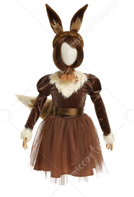 Kids Girls PM Eevee Fake Two Piece Dress Cosplay Costume Full Set with Headwear and Tail