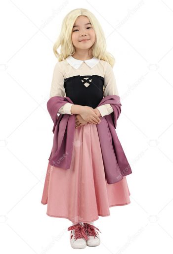 Sleeping Beauty Kids Princess Maiden Dress Cosplay Costume with Corset and Cape Inspired by Princess Aurora for Girls