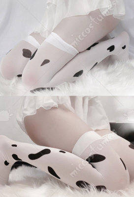 Woman Sexy Cute Cow Pattern Printed Stockings Overknee Socks Outfits Accessory