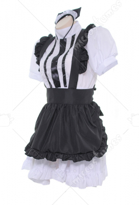 Woman Sexy Cute Japanese Style Black and White Stripped Maid Uniform Dress Homewear Pajama Sleepwear Costume Outfit with Apron and Headdress