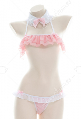 Women Cute Pink Bunny Girl Fluffy Pattern Decorated Lingerie Set