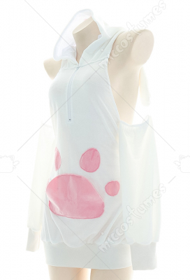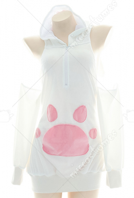 Women Cute Off-the-shoulder Cat Paw Decorated Fluffy Sleepwear Homewear Costume Ourfit