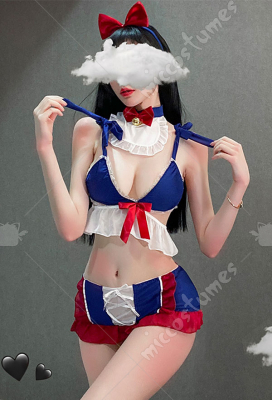 Women Cute Sexy Bunny Girl Bow Decorated Two Piece Cosplay Costume Outfit