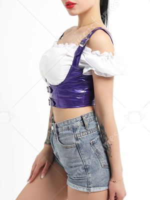 Women Leather Corset Buckle Design Push Up Corset Underbust Waist Cincher Halter Shoulder Straps Bustier Top