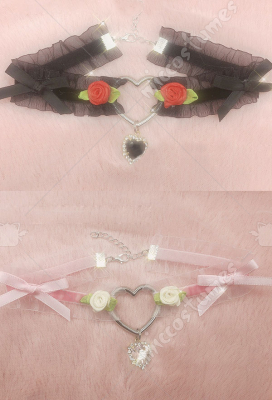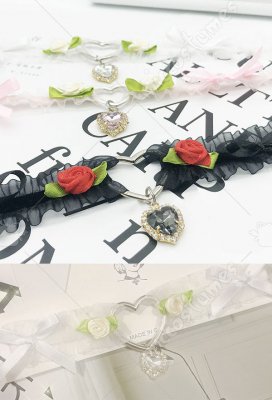 Women Lingerie Accessories Hand-made Crystal Choker Heart Bow Decorated Neck Ring Cosplay Accessory Outfit