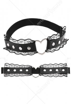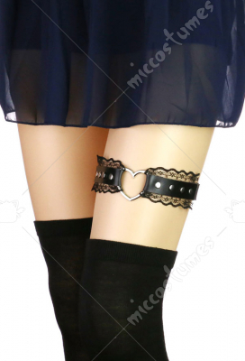 Women Leather Lace Decorated Thigh Ring Hollow Heart Shape Decorated Leg Ring