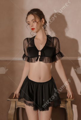 Women Maid Style Cute Bow Decorated Two Piece Bikini Set